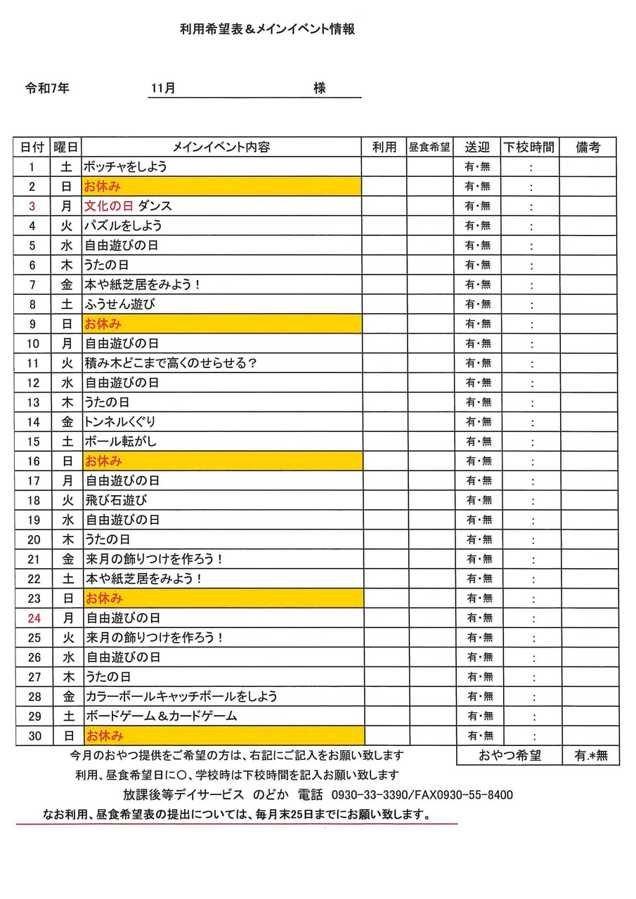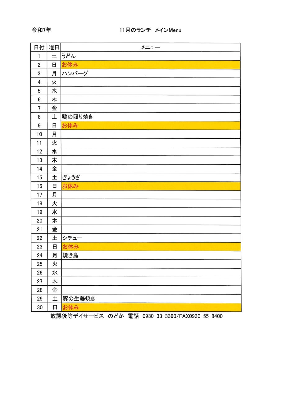 2025年11月 イベントとランチメニュー